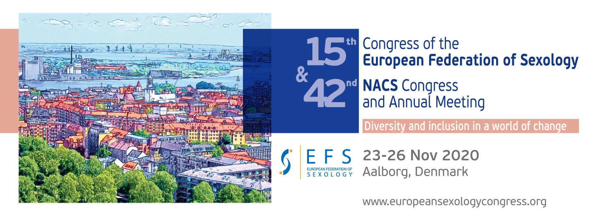 Sizleri, 23 Kasım 2020 – 26 Kasım 2020 tarihleri arasında yapılacak olan 15. Avrupa Seksoloji Federasyonu Kongresi’ne davet ediyoruz. Kognitif ve Davranış Terapileri Derneği’mizin de destekleyicilerinden olduğu kongre bu sene Danimarka’nın Aalborg şehrinde gerçekleşecektir. Bu kongre sırasında EFS Genel Genel Kurul toplantısı yapılacak ve hâlen EFS’de Yönetim Kurulu Başkan Yardımcılığı görevi yapan, KDTD Başkanımız Prof. Dr Mehmet Sungur EFS başkanı olacaktır. Şimdiden kendisini kutlarız.